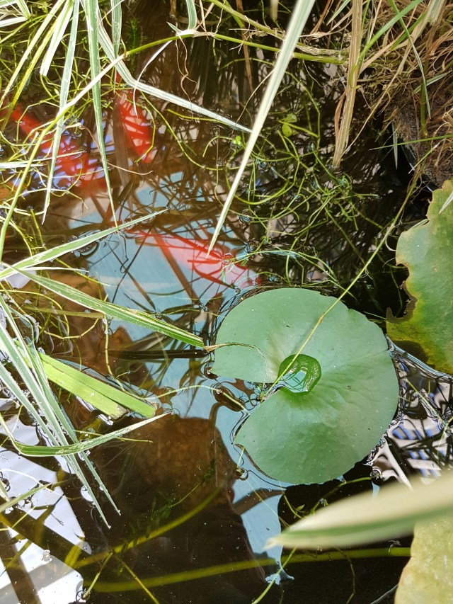 The weather is hot again. It is supposed to be an Indian Summer, we heard. Summer does not seem to have stopped for a long time. We had some of our pond water changed over a week ago. No one seems to remember exactly when.